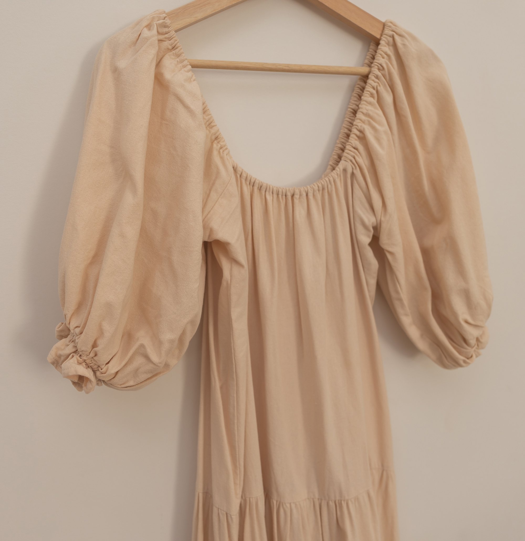 Billowy sleeves. Can also be worn off the shoulder.
