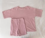 Bike shorts and oversized t-shirt. Good condition despite some overall washwear.